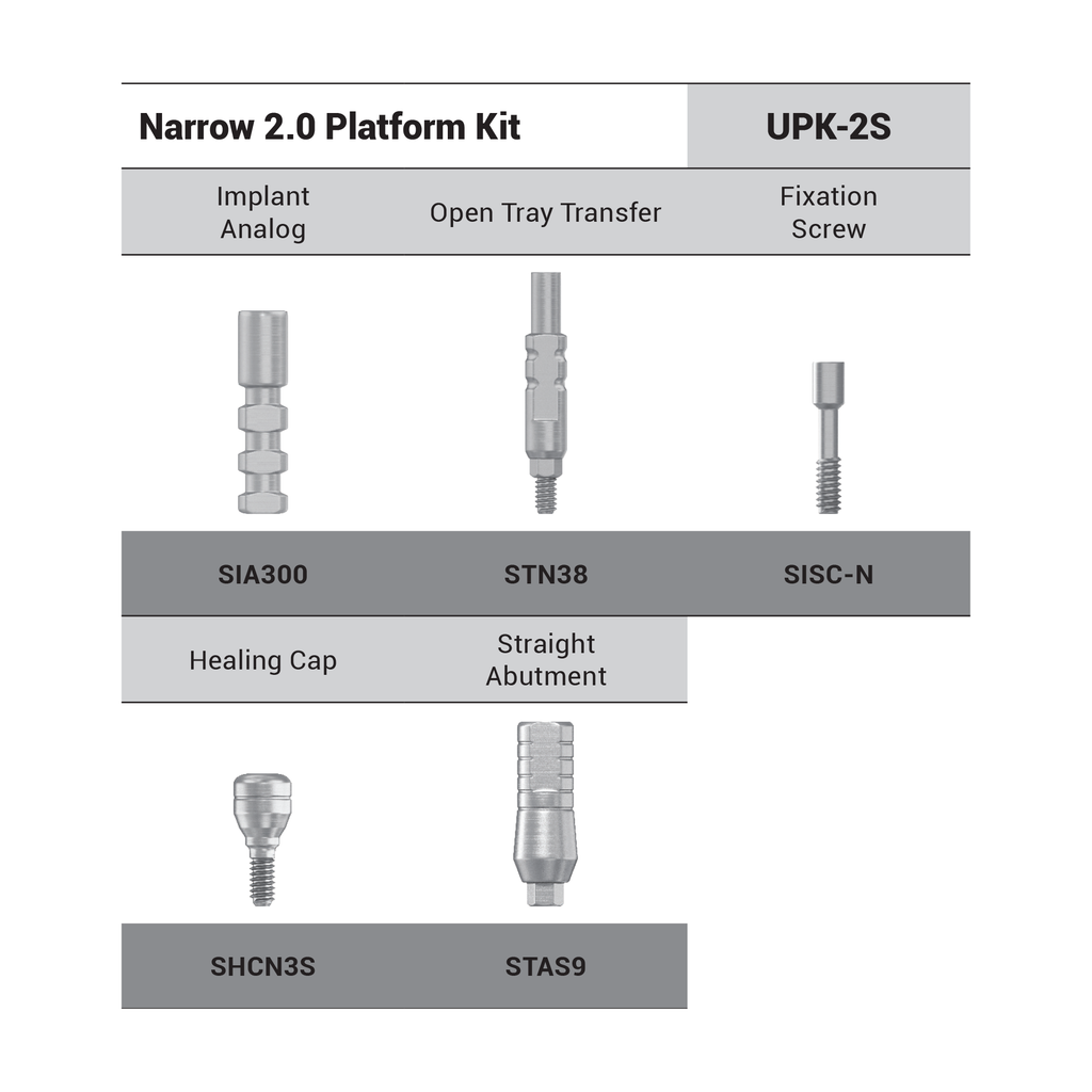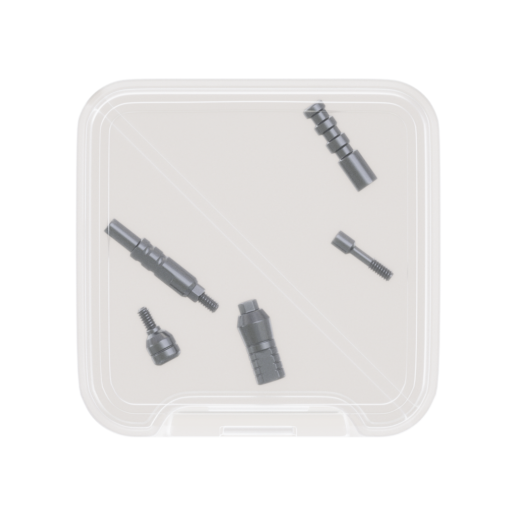 - Lab analog, impression coping, healing cap, final abutment, prosthetic screws included