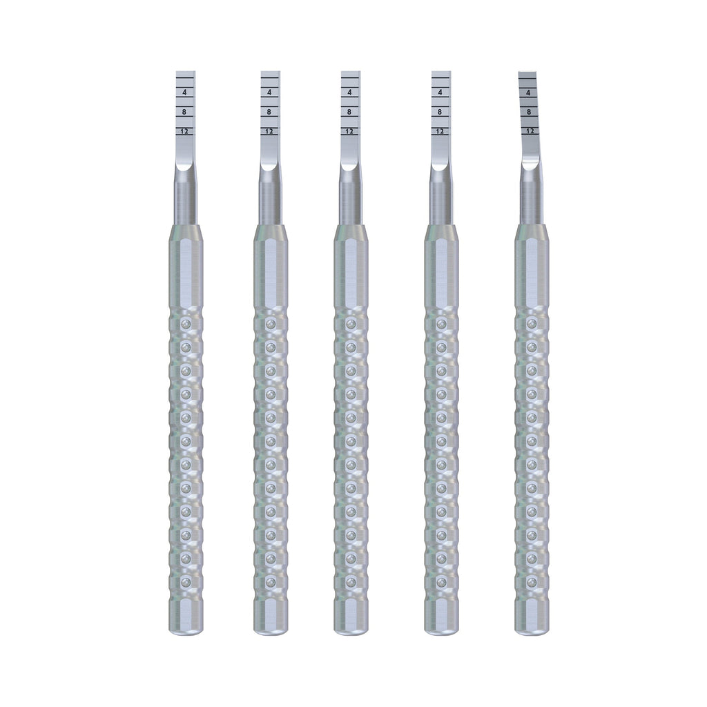 DSI Surgical Chisel is a specialized tool commonly used in various dental procedures. Its primary function is to precisely cut or shape hard tissues such as bone during surgical interventions.