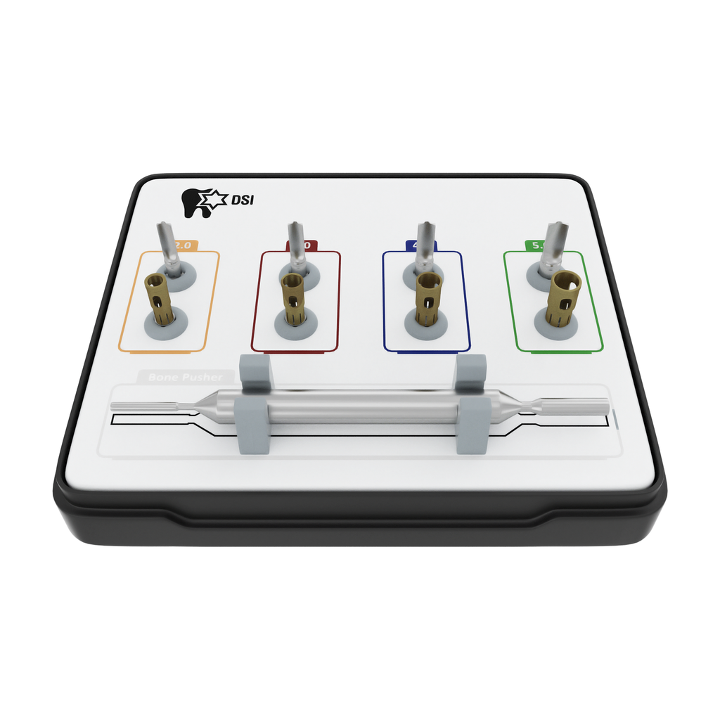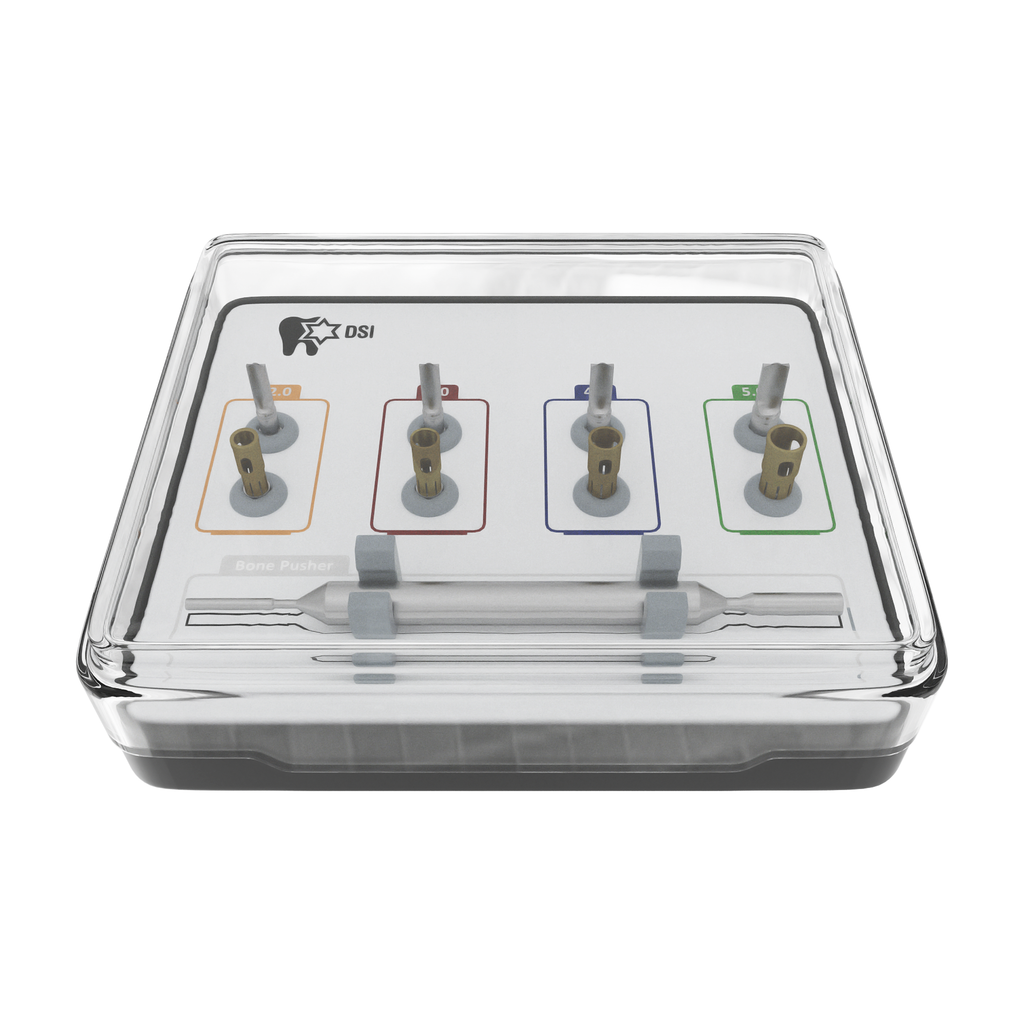The DSI NLBC Kit is designed for optimal performance during bone harvesting procedures. Utilizing a micro drilling pin at its uppermost point, the drill is stabilized throughout the entire drilling process. This pinpoint accuracy ensures that every step of the procedure will be successful and precise. DSI NLBC Drills are used for harvesting the bone and delivering it to a special bone collector located conveniently in the drill's body. All the bone harvested by the drill will stay in a specially designed-collector until it is pushed away. The collectors are made to capture maximum amounts of bone at the drilling site, the harvested bone can be just pushed outside, using the special bone pusher.