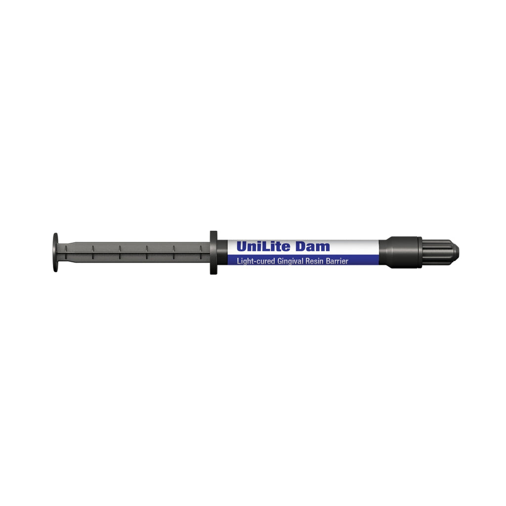 DSI UniLite Dam comes in a convenient syringe format, ensuring efficient and precise application. Its viscous semi-gel consistency allows for adequate flowability, making it simple to spread evenly over the desired areas. Moreover, its dark blue color provides excellent visibility against the gingiva, soft tissues, and teeth, ensuring accurate placement and coverage.