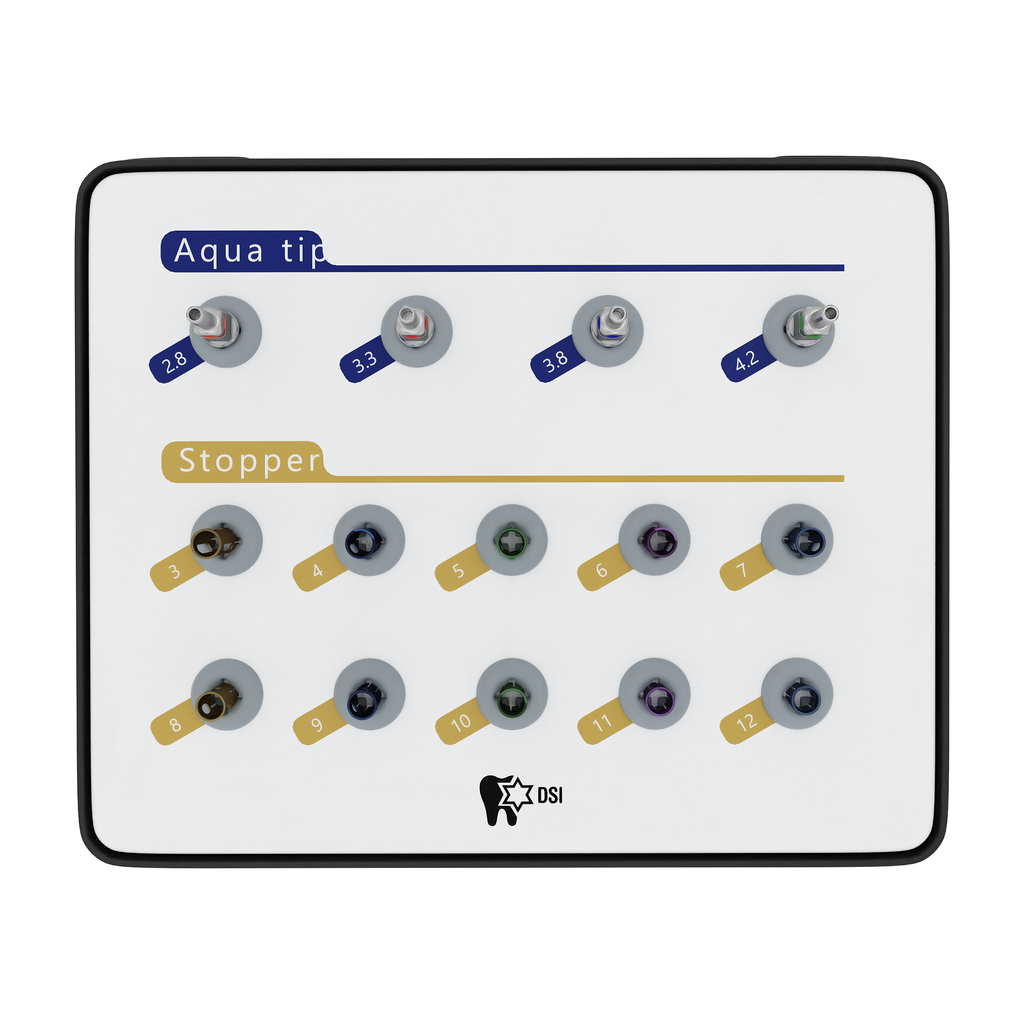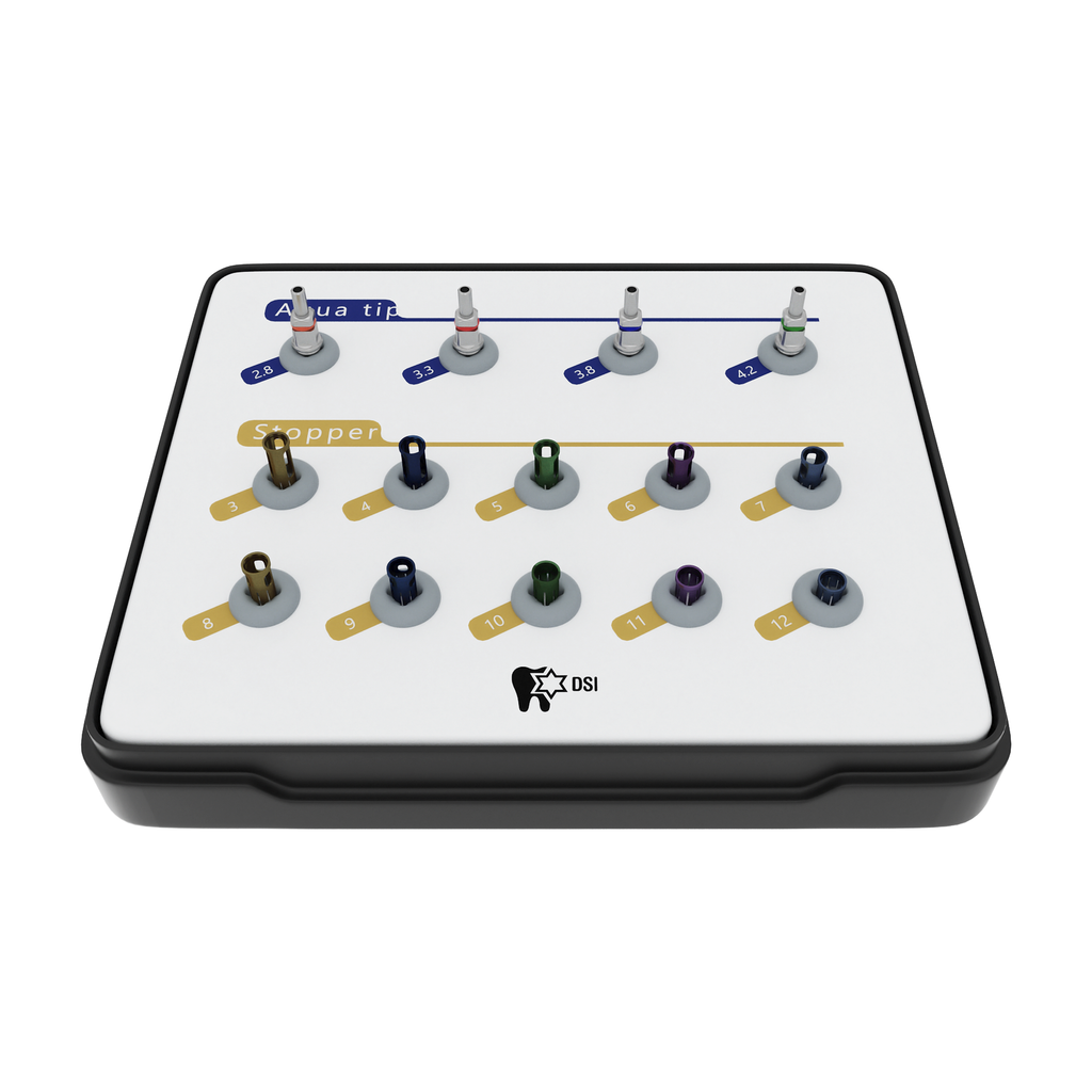 The DSI Water Rising System Kit convert any of your existing Crestal Approach Sinus kits to the hydraulic Aqua floor lifting version with ease using DSI WRS Kit!. This method of elevating the sinus membrane is known to result in fewer post-operative complications and quicker healing compared to other approaches. With this kit, practitioners can achieve accurate and predictable outcomes for their patients. The DSI WRS Kit is a unique hydraulic system that has been engineered to provide the best membrane elevation results. Its special aqua tips feature four holes arranged in a carefully-crafted pattern for maximum efficiency and safety. In addition, these tips are capped with a dome-shaped structure to protect the delicate sinus membrane from harm. DSI WRS Kit is outstanding in terms of safety, reliability, and predictable results.